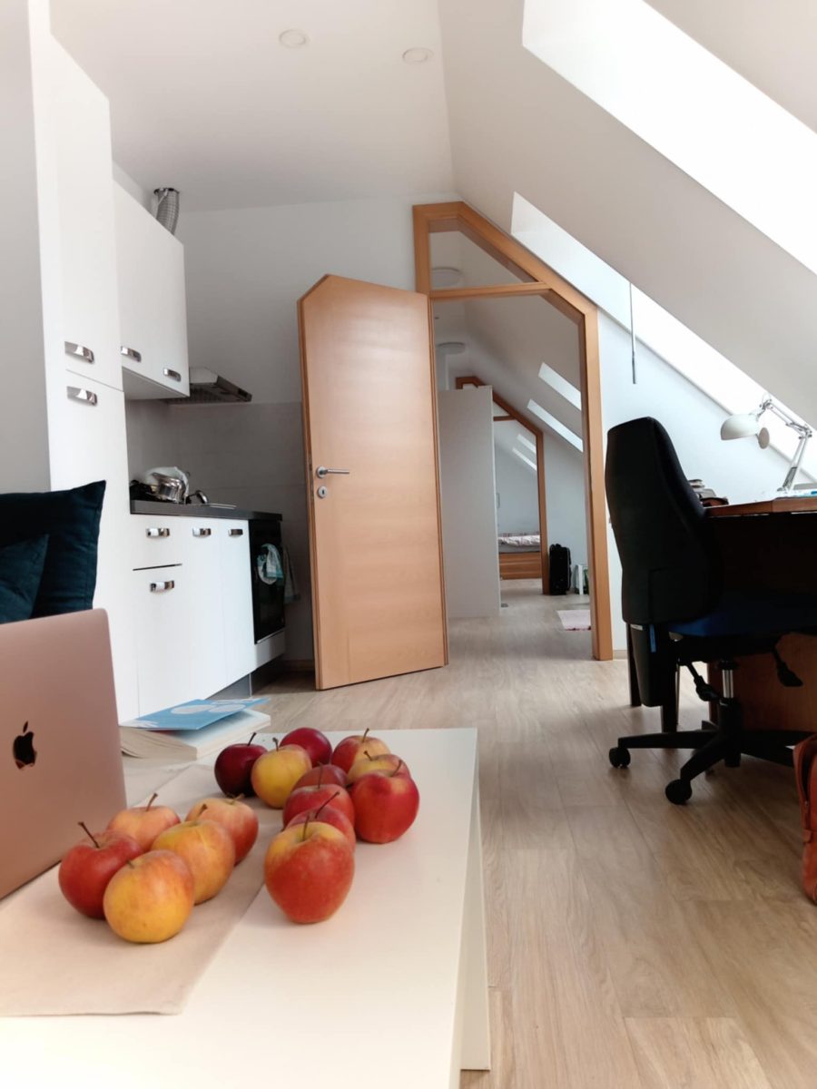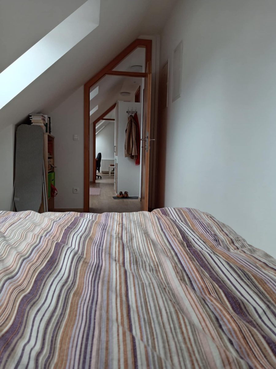 »O mesecu, ki sem ga preživela tukaj, lahko pišem samo dobro: v središču vasi s tisoč prebivalci je brezhibno obnovljeno in opremljeno majhno stanovanje, njegovo edino pomanjkljivost mi je uspelo obrniti v svoj prid: je v tretjem nadstropju stare stavbe brez dvigala, do podstrešne rezidence je treba premagati natančno 61 stopnic. To sem vedela vnaprej, zato sem prispela z minimalno prtljago, načrtovala sem, da bom res delala cele dneve, za to potrebujem samo svoj računalnik in edini slovensko-madžarski slovar, tako da je šlo vse v en sam kovček. Za branje sem prinesla samo eno knjigo, pa še to takšno, ki jo že dolgo berem, jo vedno znova začenjam od začetka in preberem samo po nekaj strani: Esterházyjev Dnevnik pankreasa. Zdaj mi jo je uspelo prebrati do konca. Ni bilo lahko.